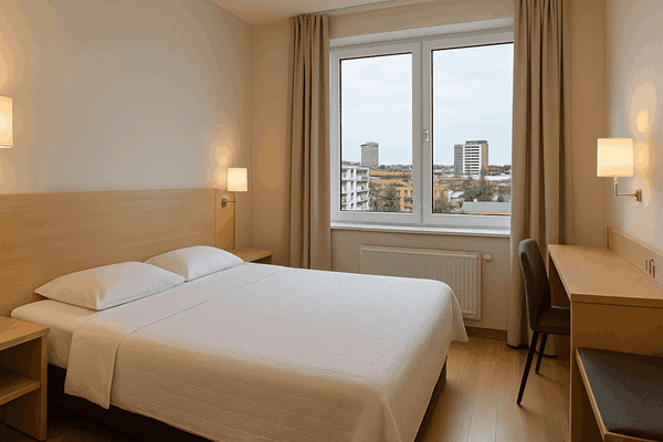 - Een schone, functionele kamer met een bed en een eigen of gedeelde badkamer.